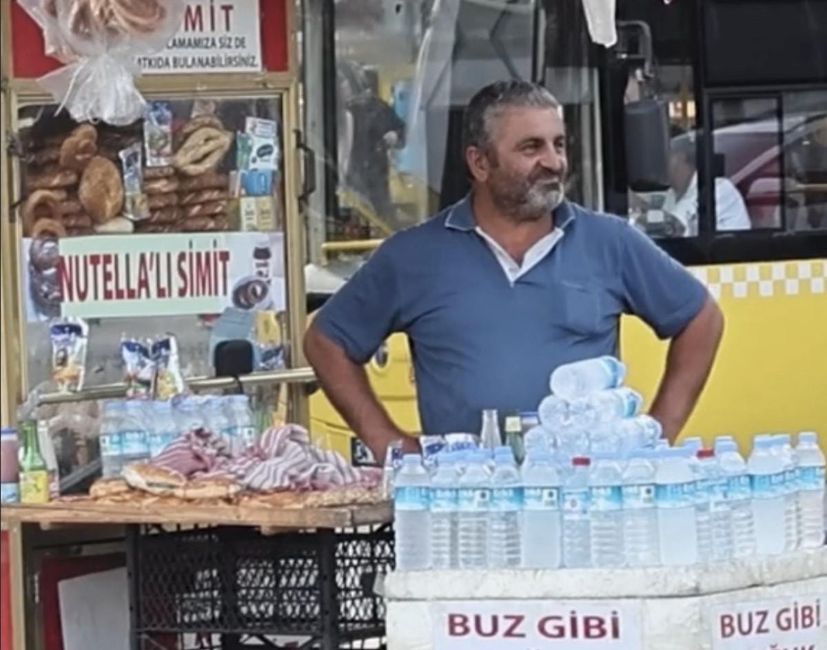 Yaşlı simitçinin kağıtta yazanları okuduktan sonra verdiği tepkileri kayıt altına alan Ünal, görüntüleri sosyal medya hesabında paylaştı.
