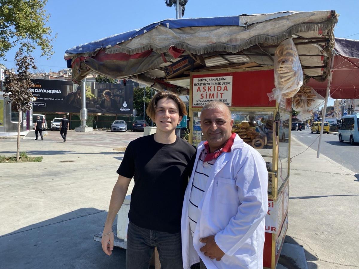 Sosyal deneyi gerçekleştiren Furkan Ünal, Beşiktaş Meydanı'nda simit satan 52 yaşındaki Nazım Demir'e 'Kimse söylememiş olabilir ama elinden geleni yapıyorsun' yazılı bir not verdi.