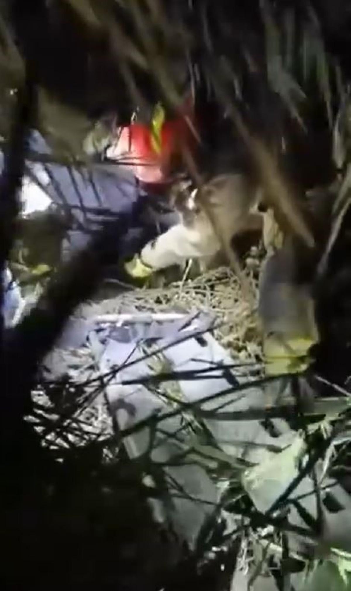 İhbar üzerine olay yerine gelen itfaiye ekipleri, yüksekten düşen adama halatlarla ulaştı.