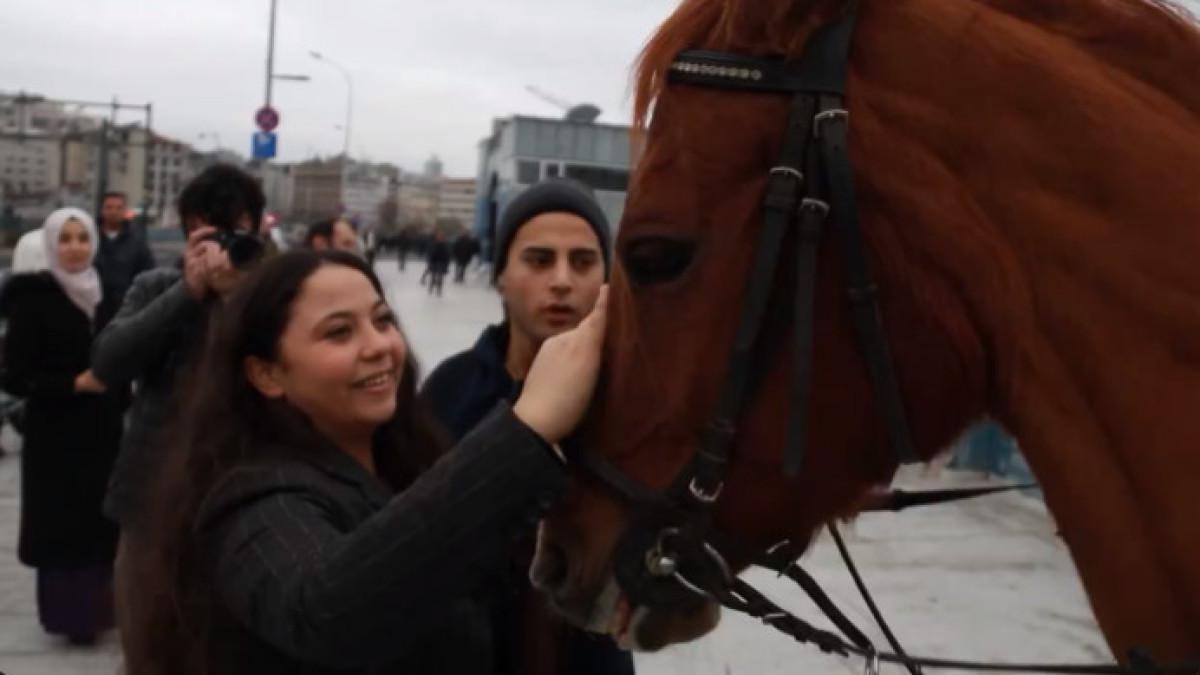 Polisleri durduran vatandaşlar, hem atları sevdi hem de onlarla fotoğraf çektirerek bu anları ölümsüzleştirdi.