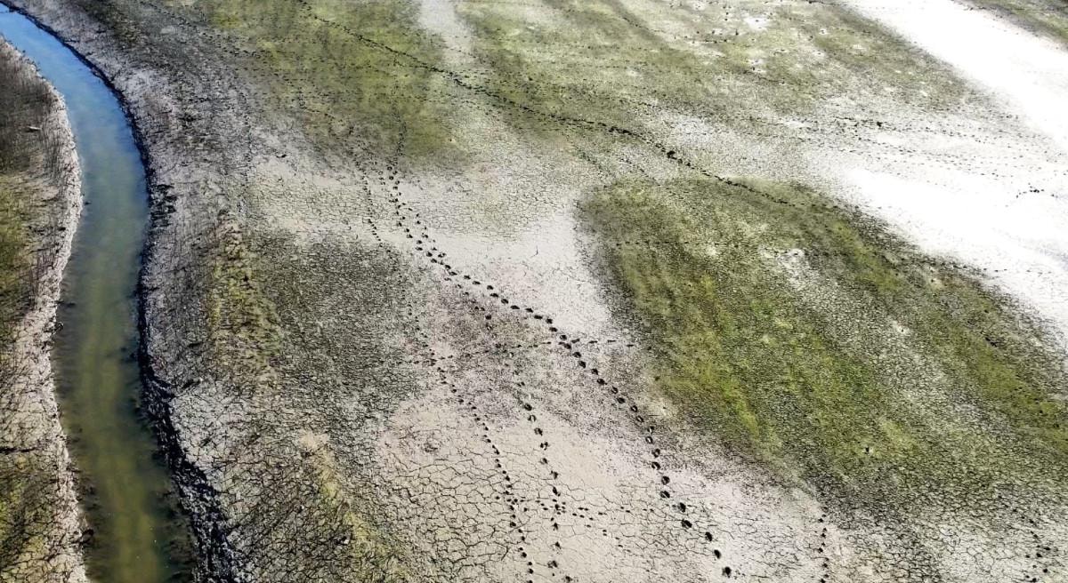 Görüntülerde suyun olmadığı bölgelerde otların yeşerdiği görüldü. Ayrıca hayvanların otladığı da kameraya yansıyor.