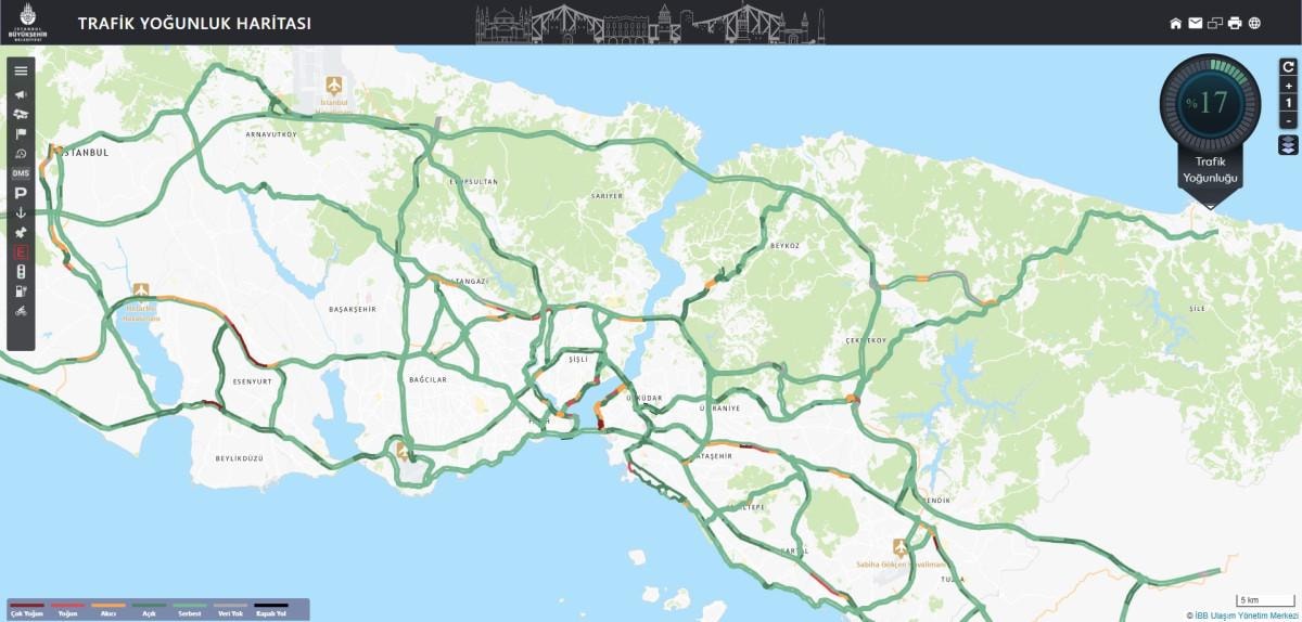 Trafik yoğunluk uygulaması haritasında yoğunluk yüzde 6 olarak ölçüldü.