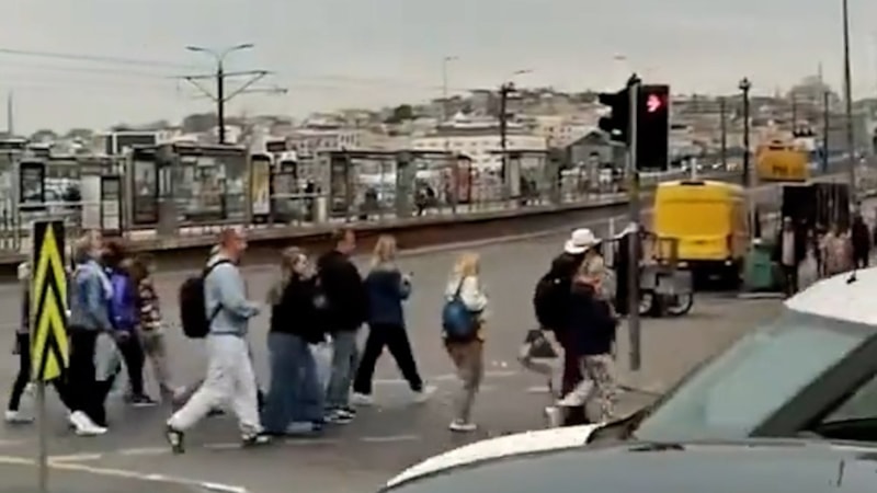 İstanbul'da ışıklarda bekleyen bir turist kafilesinin davranışı da dikkat çekti.