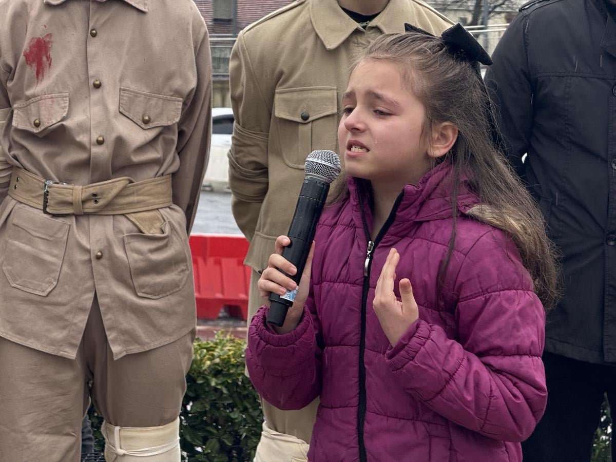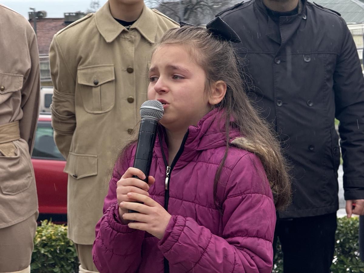 Törende gözyaşları içinde okuduğu şiirle herkesi duygulandıran ilkokul 4.sınıf öğrencisi Eslem Kuş, "Topluluğu görünce ağlayasım geliyor. Oradaki şehitlerimizin canı yandı, evlatlarından ayrıldılar. Canlarını feda ettiler toprak için. Bunları düşünüyorum." dedi.