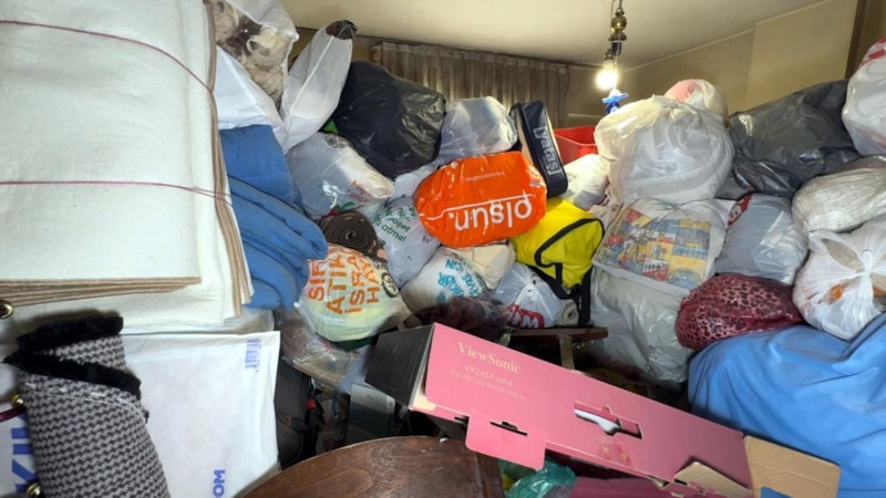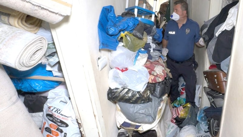 Tüm oda, mutfak ve tuvaletin neredeyse tamamen dolu olduğu belirlenirken, koridorda eşyalara basmadan yürümenin imkansız olduğu görüldü.