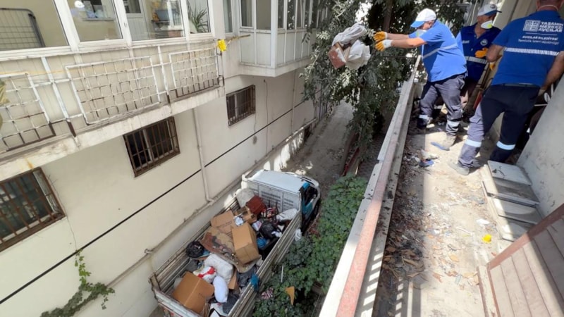 Bina sakinlerinden Şenay Özkırlangıç ise, "Bulduğu her şeyi eve getirip biriktirme huyu var. Bayağı da eşya toplamış ev çöp ev olmuş. Biz de şaşırdık görünce. Ben onu sadece manavın önünde görüyodum yiyecek toplarken. Ben de eve girince şoke oldum. Korkunç bir manzara var" diye konuştu.