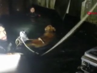 Bunun üzerine köpeğin olduğu yere ulaşan bir itfaiye ekibi, yardım bekleyen köpeği beline bağladığı iple kendine doğru çekti. Önce bir kurtarma botuna alınan köpek daha sonra kıyıda bekleyen ekipler tarafından yukarı çıkarıldı.
