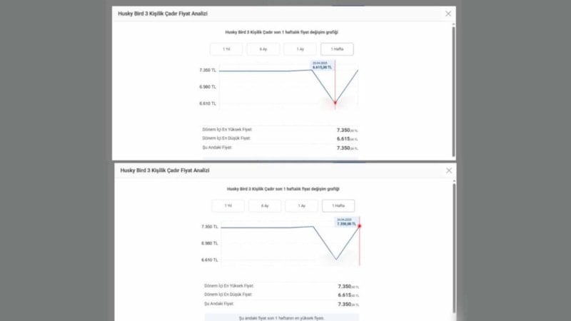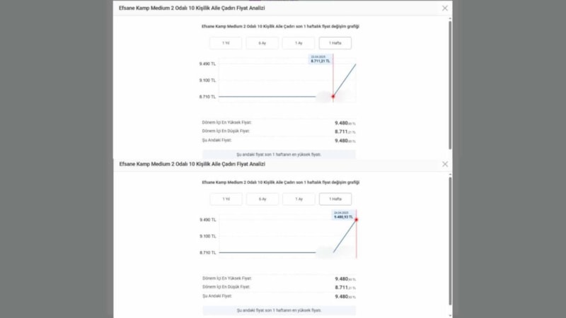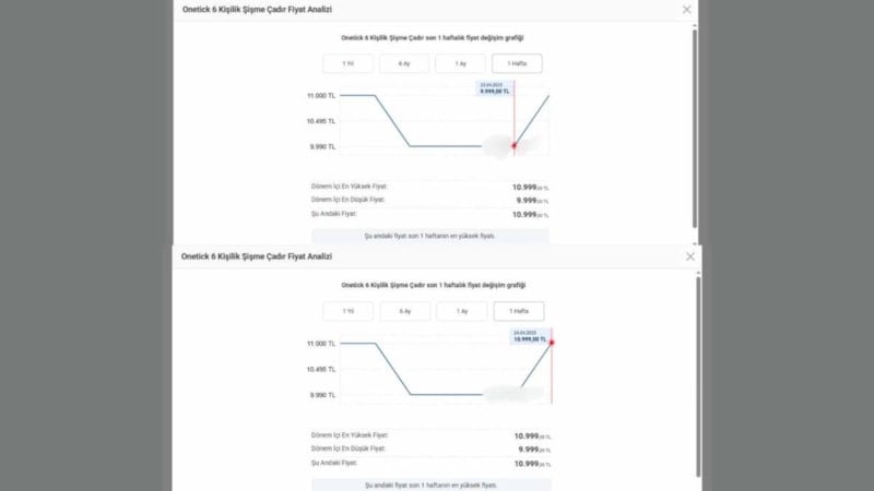 Benzer şekilde, 23 Nisan’da 9 bin 999 liraya satılan 6 kişilik çadır da deprem sonrası bin lira artışla 10 bin 999 liraya yükseldi.