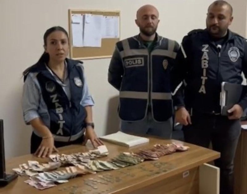Dilencilik faaliyetinde bulunan kadının üzerinden çıkan nakit para ve altınlar tutanak altına alınarak, idari para cezası uygulandı.