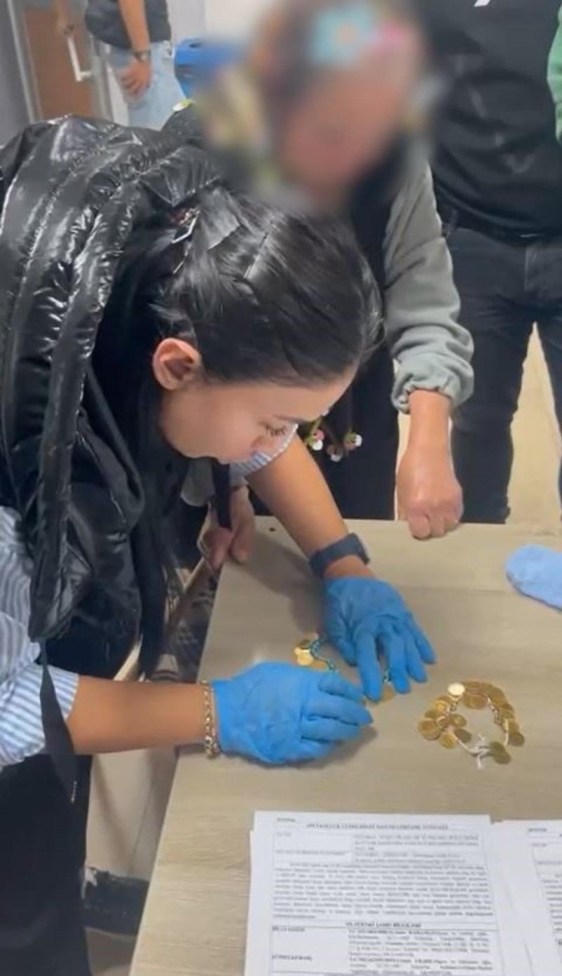 Arama sonucunda, kadının üzerinden tam 67 adet çeyrek altın ve yüklü miktarda nakit para çıktı.