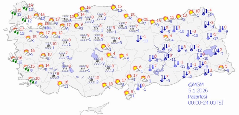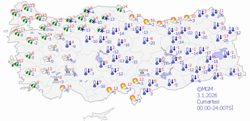 İstanbul ve İzmir'de yağmur bekleniyor. Donurucu soğuğun etkisindeki Ankara'da ise sıcaklık biraz yükselecek.