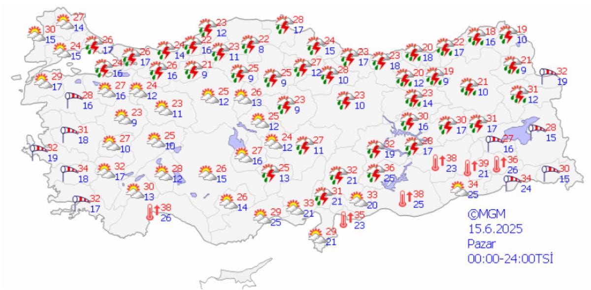 Tekin, İstanbul'da yarın ve cumartesi yağış beklentisinin olmadığını ancak pazar günü sağanak ve yer yer gök gürültülü sağanakların görüleceğini anlatarak, kentte havanın cuma günü 28, cumartesi 26, pazar günü ise 25-26 derece civarında seyredeceğini söyledi.