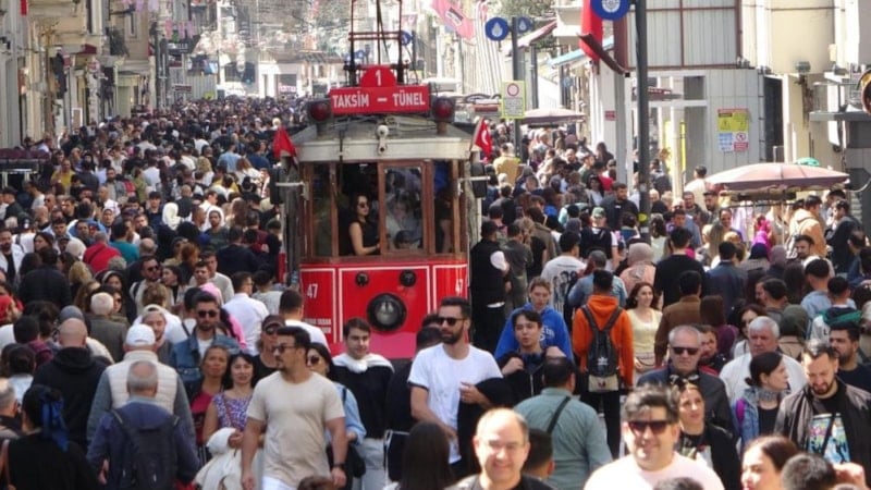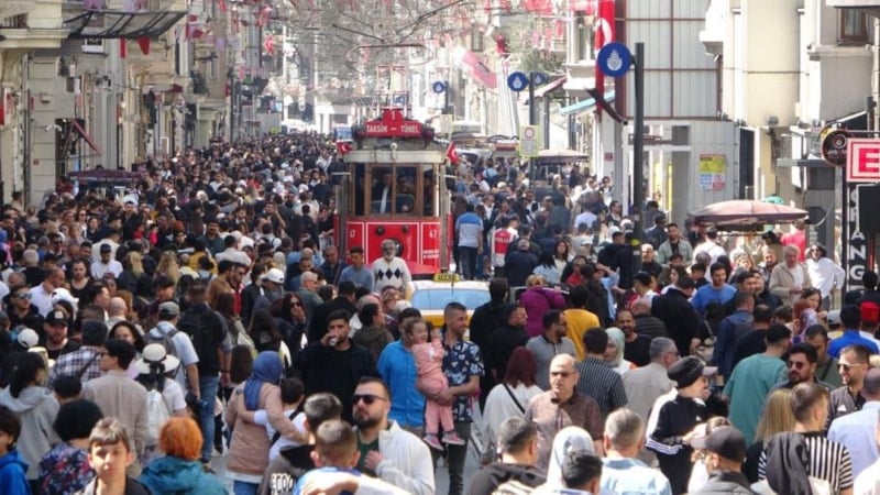 Bayram tatilinde şehir dışına çıkmayan vatandaşların Taksim ve İstiklal Caddesi'ne akın etmesiyle caddede adeta insan seli oluştu.