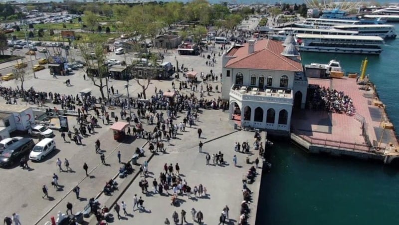 İstanbul'da bayramda sahiller ve turistik mekanlar doldu taştı. Tercih edilen yerlerden biri de Adalar oldu. Birçok vatandaş sabah erken saatlerde Adalar vapuru için iskelelere akın etti. Kadıköy'de iskeleye gelenler Adalar’a gitmek için vapurlarda uzun kuyruklar oluşturdu. Yoğunluk nedeniyle Adalar’a ek vapur seferleri konuldu. Kadıköy iskelesindeki yoğunluk havadan görüntülendi.