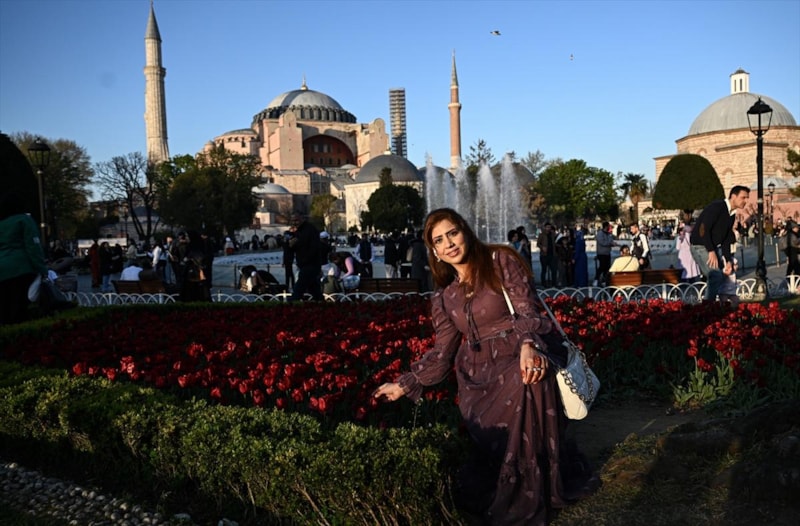 Sultanahmet Meydanı'nda çocukları Ege ve Defne ile gezen Derya Erkut, bölgeyi çok iyi bildiğini fakat gezmeye vakitleri olmadığı için bugünlerde çocukların da görmesini istediğini söyledi.