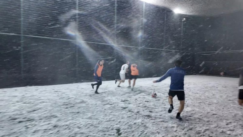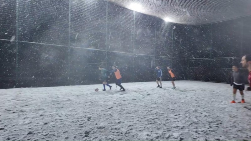 Maltepe’de soğuk havaya ve kar yağışına rağmen halı saha maçı yapan bir grup futbolsever, karşılaşmalarını yarıda bırakmadı ve milyonlarca futbol tutkununa adeta iç çektiren görüntüler ortaya çıktı.