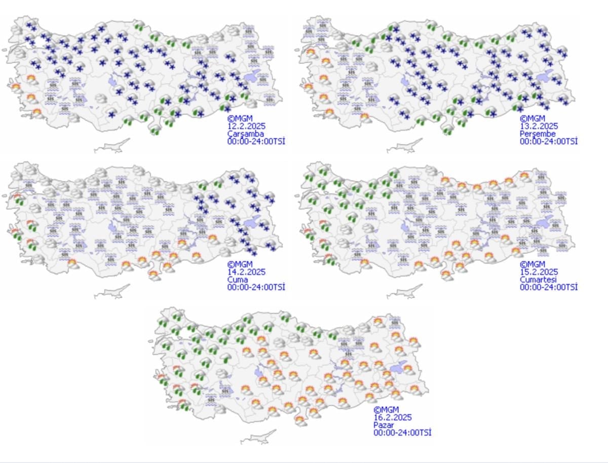Yağışların Akdeniz kıyıları, Orta Karadeniz kıyıları ile Giresun çevrelerinde yağmur, yağış alan diğer yerlerde karla karışık yağmur ve kar şeklinde olması tahmin ediliyor.