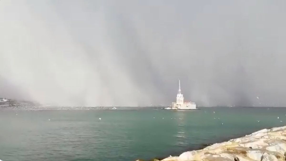 Kar bulutlarının Kız Kulesi arkasından kameraya yansıyan görüntüsü, İstanbulluları adeta büyüledi.