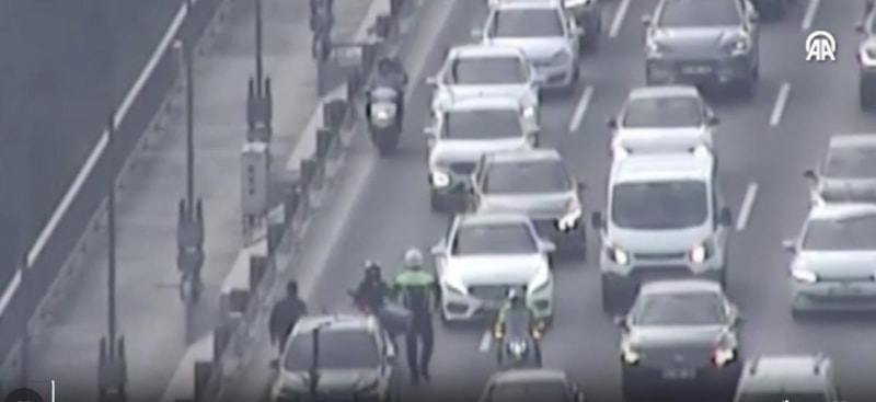Motosikletli polis memuru Ebubekir Sıddık Doğru, Fatih Sultan Mehmet Köprüsü'nün TEM güney istikametinde, 34 MRN 879 plakalı cipin arıza yaptığını tespit etti.