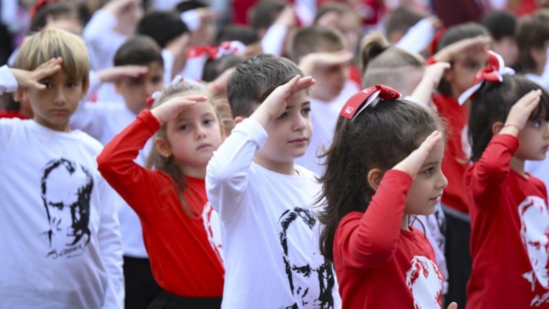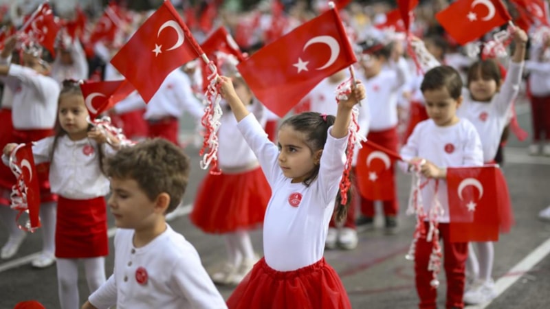 İstanbul'da ise ilkokul öğrencileri, giydikleri 100. yıl tişörtleriyle Cumhuriyet Bayramı'nı kutladı.