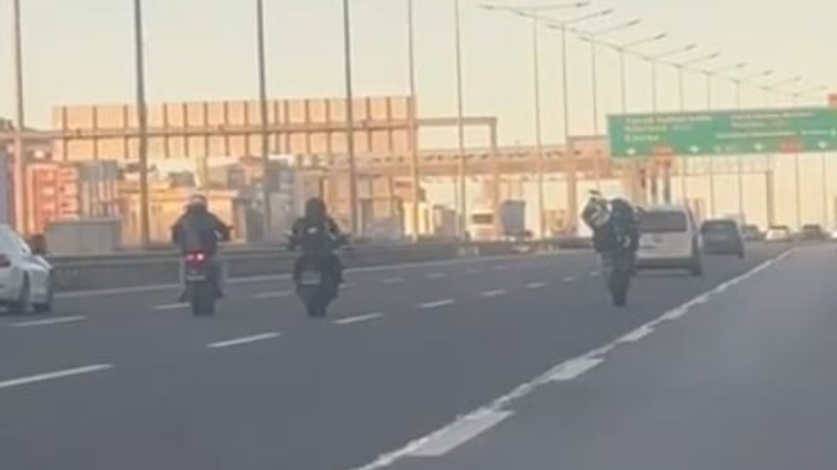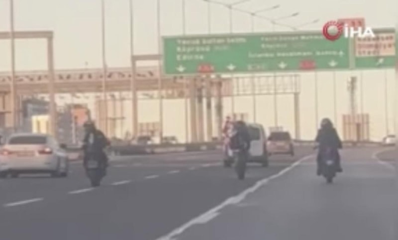 Görüntülerde motosikletli grup içerisindeki şahısların tehlikeli hareketler sergileyerek otoyolda ilerlediği görüldü.