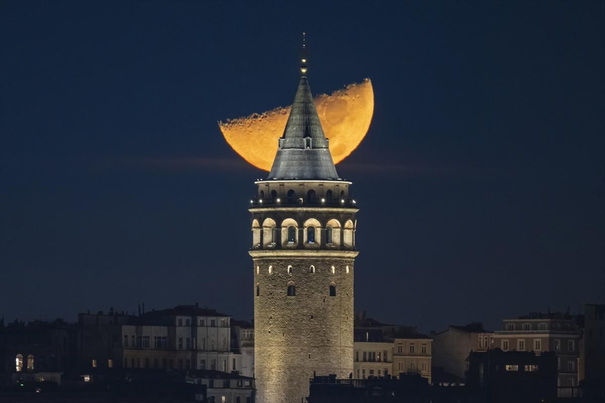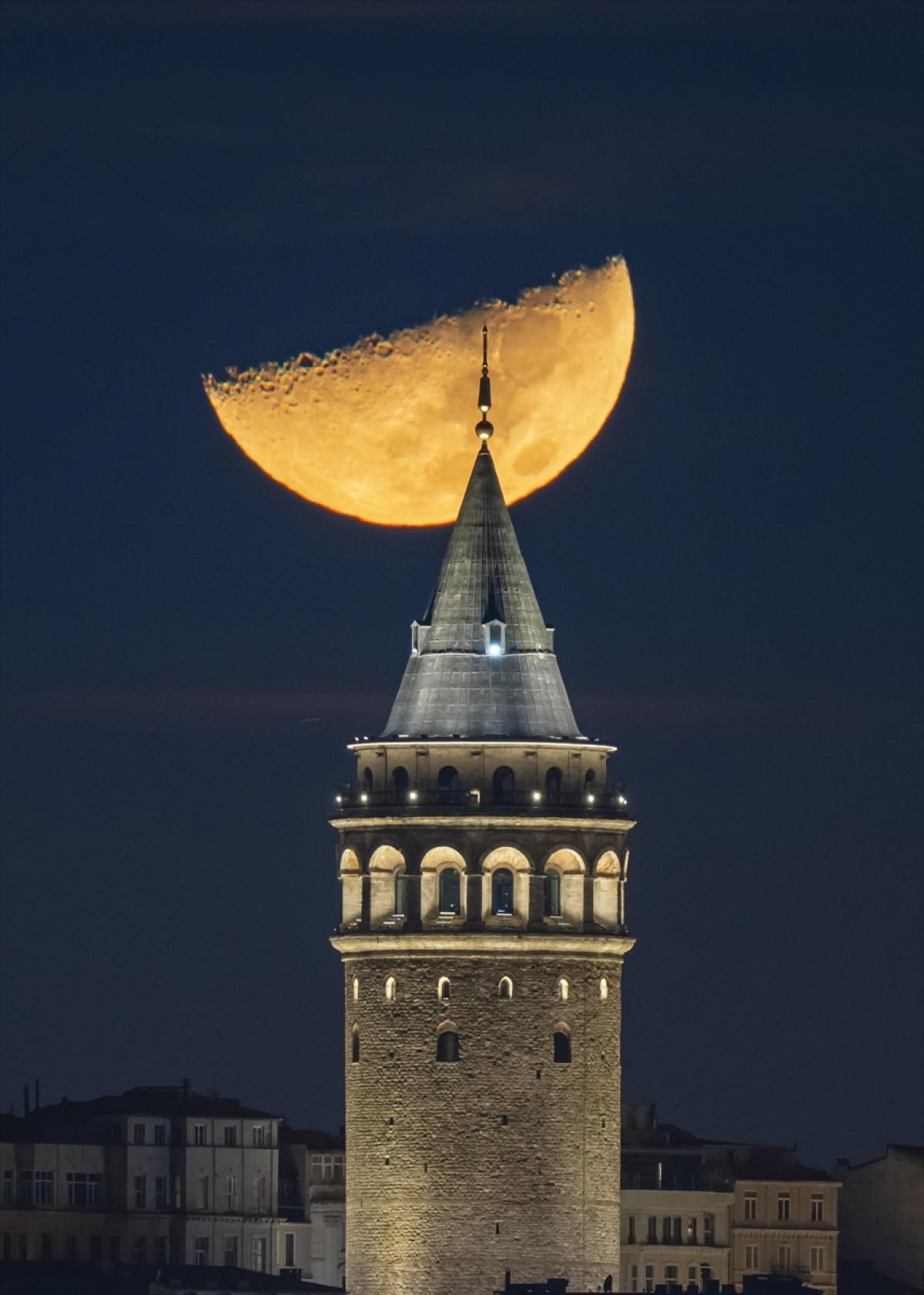 İstanbul'da yarım ay, Galata Kulesi ile buluştu.