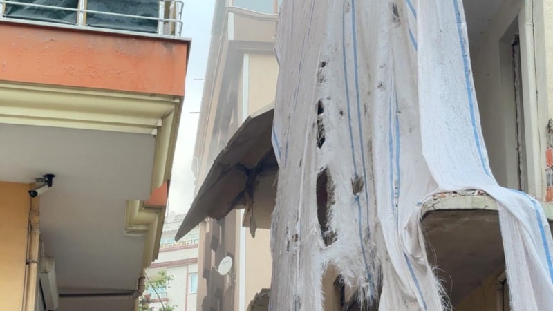 Bu sırada yan binadaki bir evin penceresinden içeriye beton parçaları da girdi.