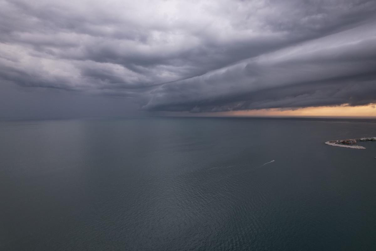1 haftadır etkili olan sağanak yağış sonrası Beylikdüzü ve Büyükçekmece semalarında, raf bulutu (shelf cloud) görüldü.