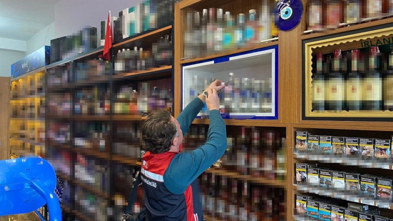 Denetimler kapsamında, iş yerlerinin bulundurması gereken evraklar ve alkol şişelerinin bandrolleri kontrol edildi.