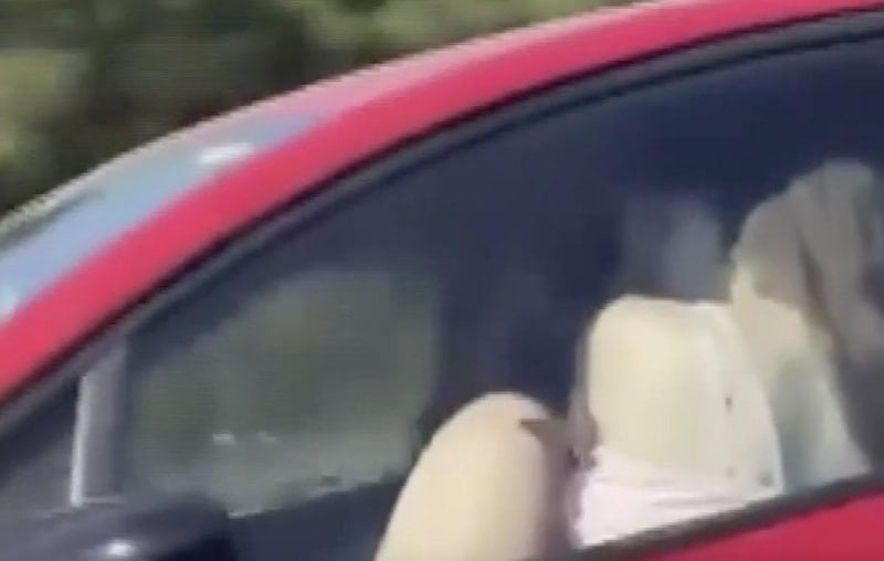 Seyir halindeki diğer araçlardaki kişilerin, cep telefonuyla kayda aldıkları o anlar, sosyal medyada paylaşıldı.