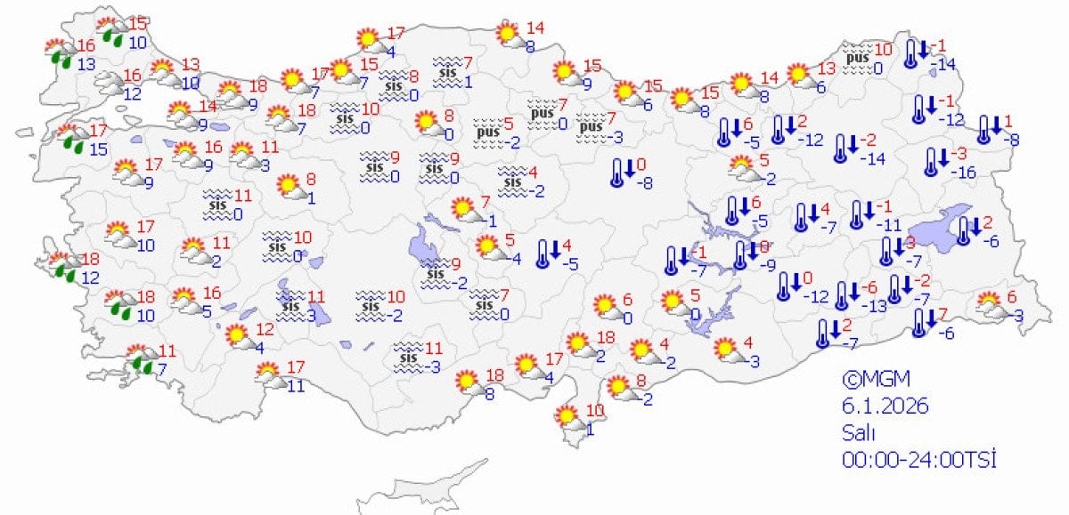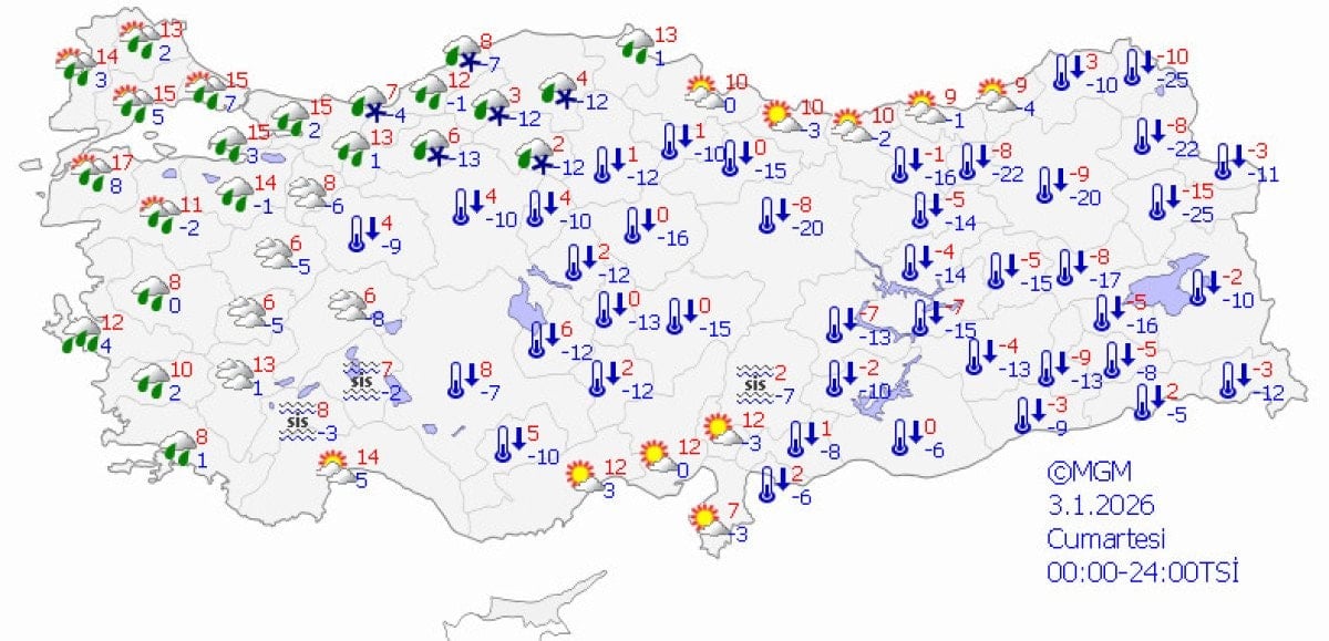 İzmir'de ise hafta sonu boyunca kuvvetli sağanak beklendiğini belirten Tekin, sıcaklıkların 12 ila 16 derece olacağını söyledi.