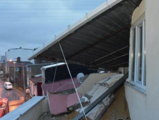 Başakşehir ilçesi Altınşehir Mahallesinde bulunan 2 katlı bir binanın çatısı şiddetli rüzgarın etkisiyle yerinden çıkarak yan tarafta bulunan tek katlı binanın çatısına uçtu.