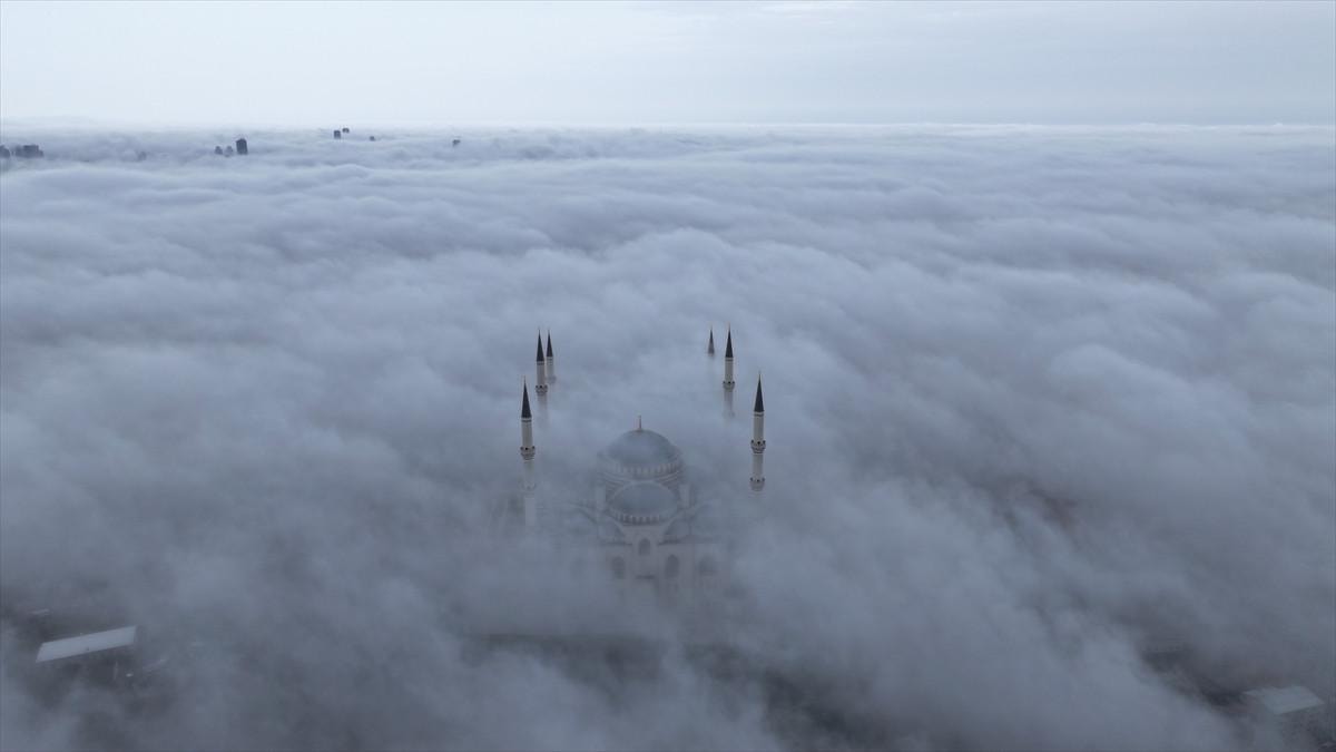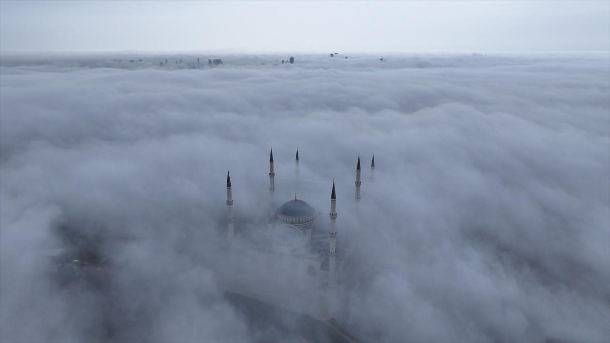 Yine Çamlıca Tepesi ve çevresindeki binaların bir kısmı da sisin altında kaldı.