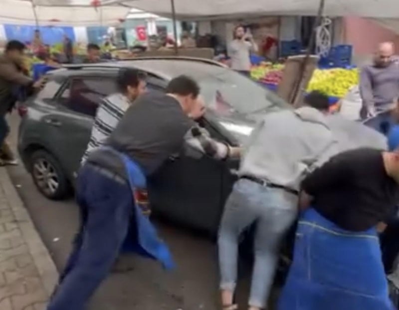 Otomobili pazarın bulunduğu sokaktan karşı kaldırıma geçiren pazarcılar daha sonra park etti.