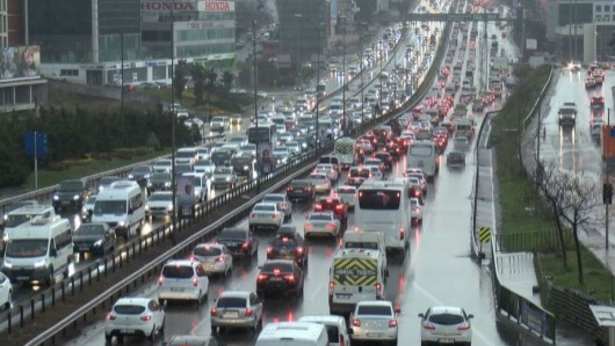 Maltepe D-100 Karayolu'nda yağış nedeniyle trafik yoğunluğu yaşandı.