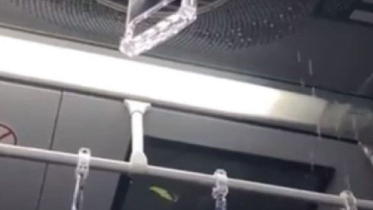 Yağan yağmur sonrasında bir metrobüsün tavanından su aktı. Tavandan su akması yolcuların cep telefonu kamerasına yansıdı.