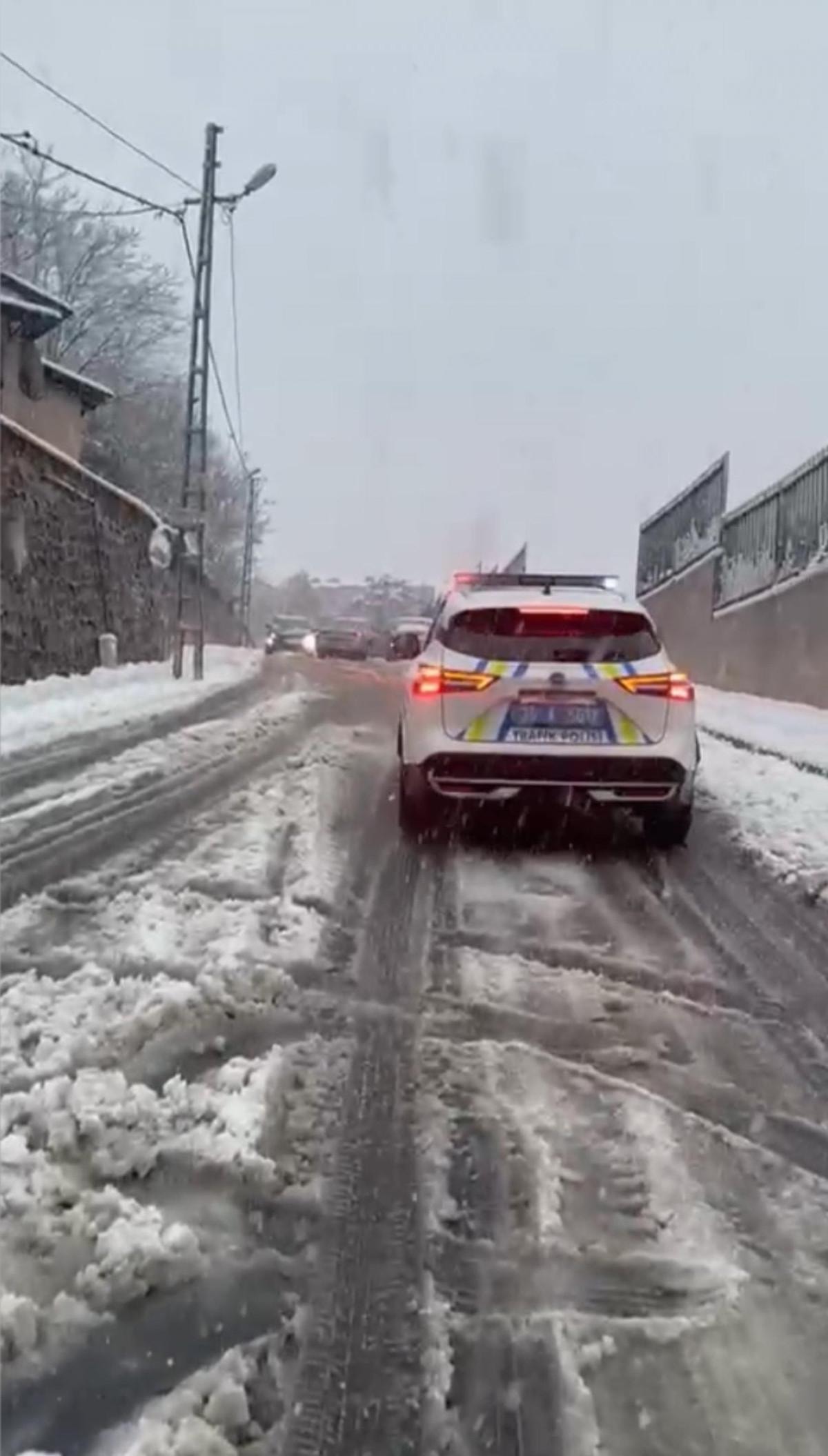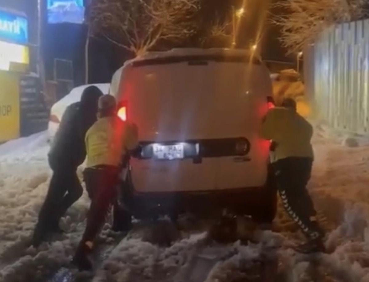 Yolda kalan sürücüler ise araçlarını iterek onları kurtardı.