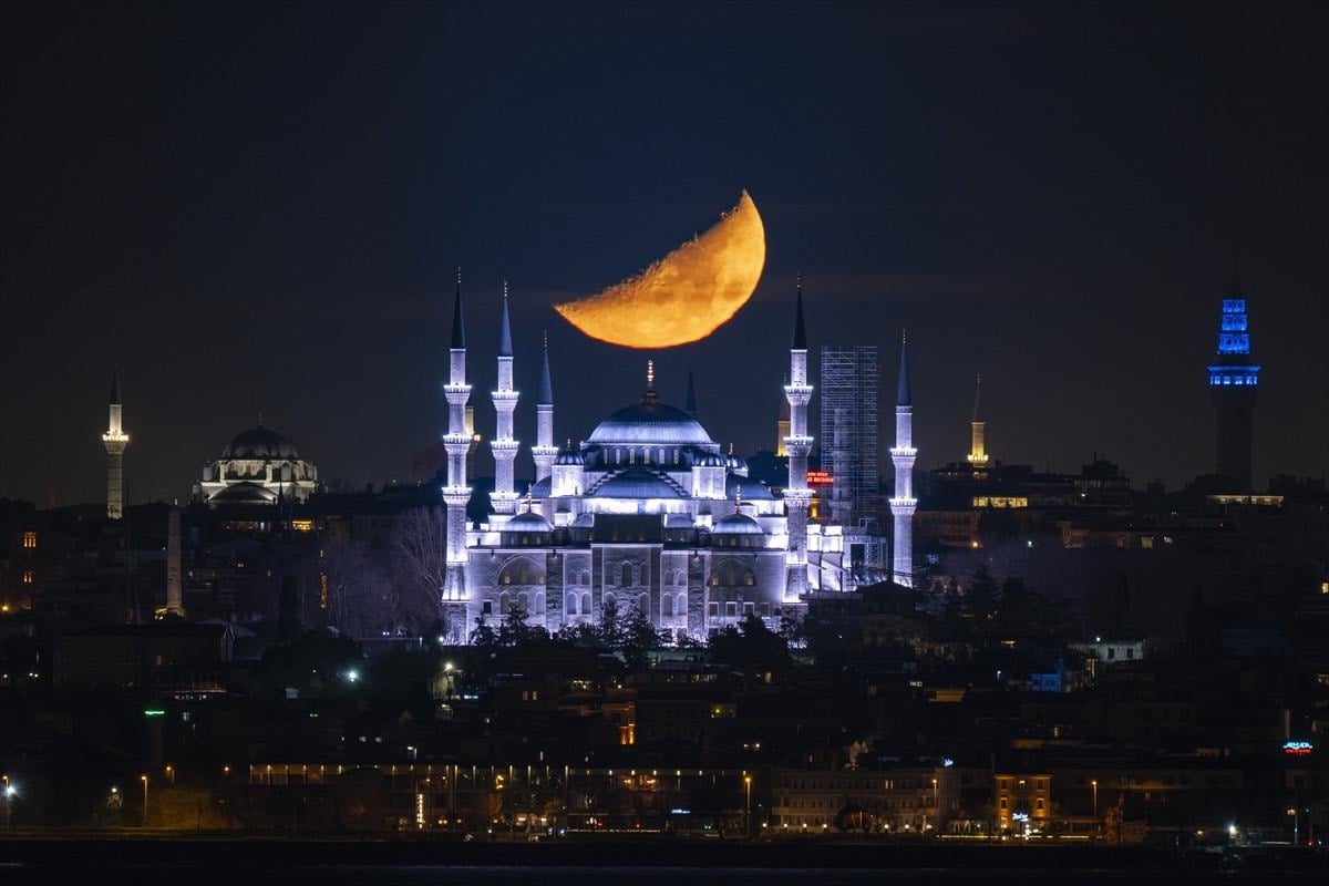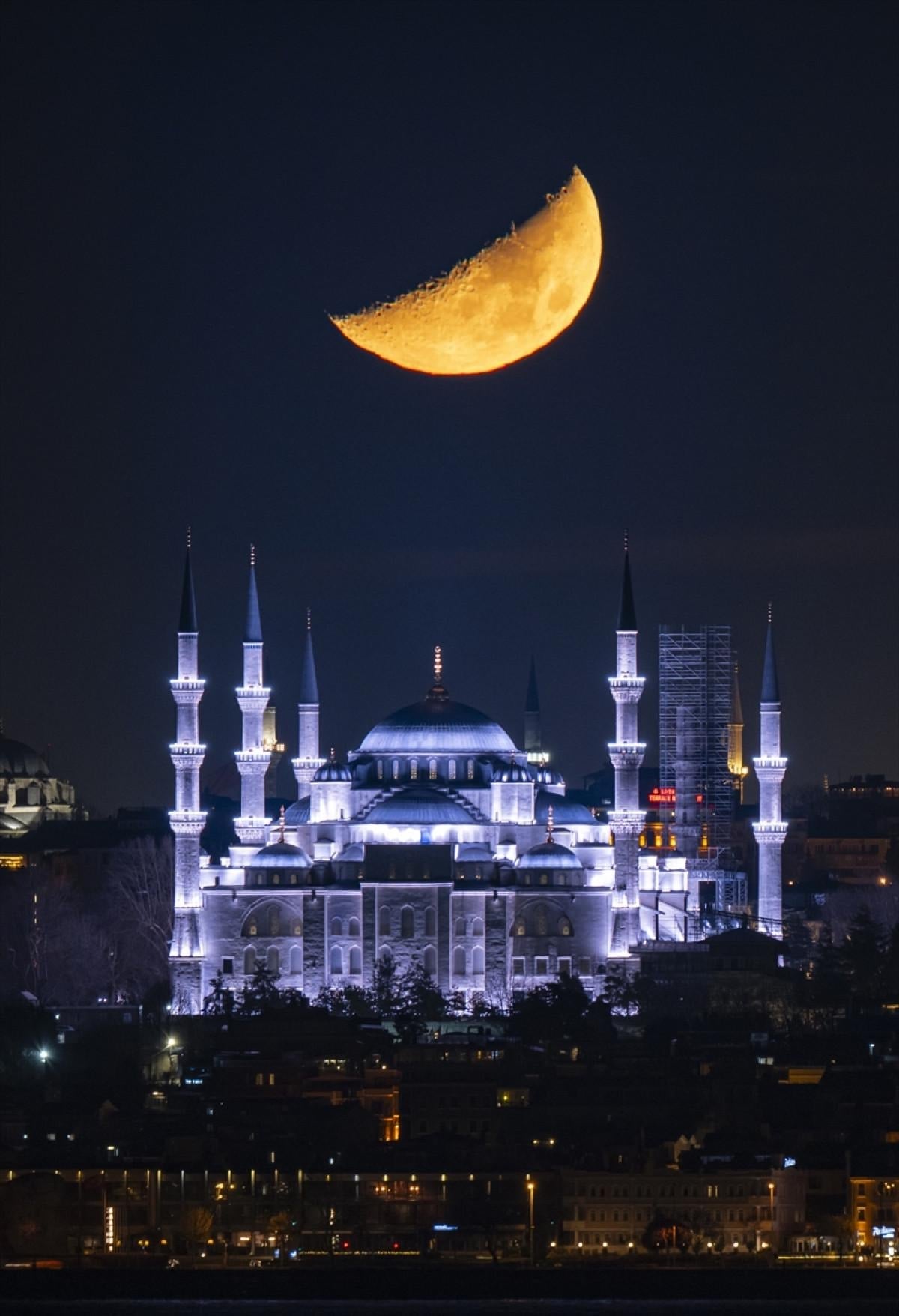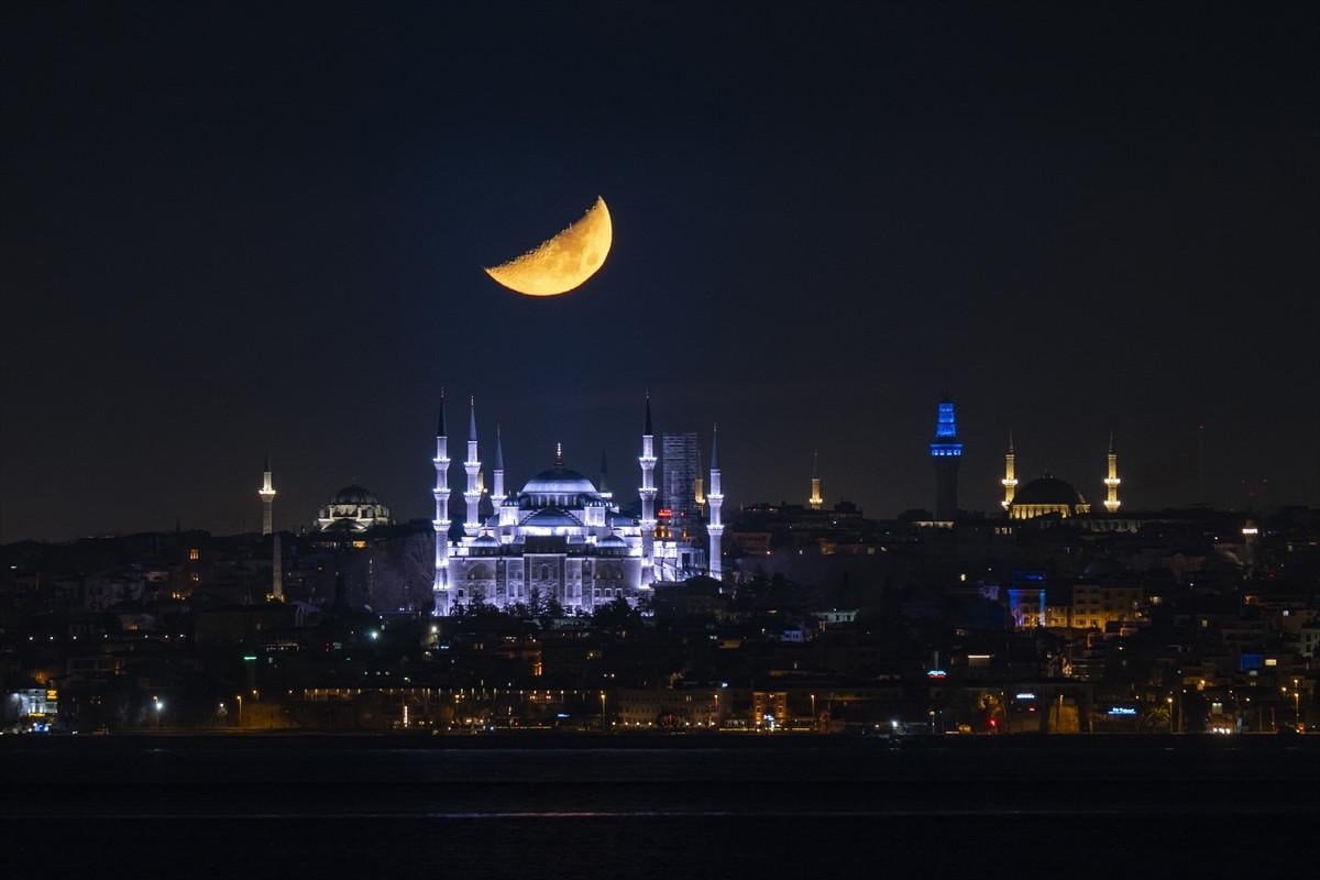 Yarım ay; Sultanahmet Camii, Beyazıt Kulesi ve diğer tarihi yapılarla ile birlikte görüntülendi.