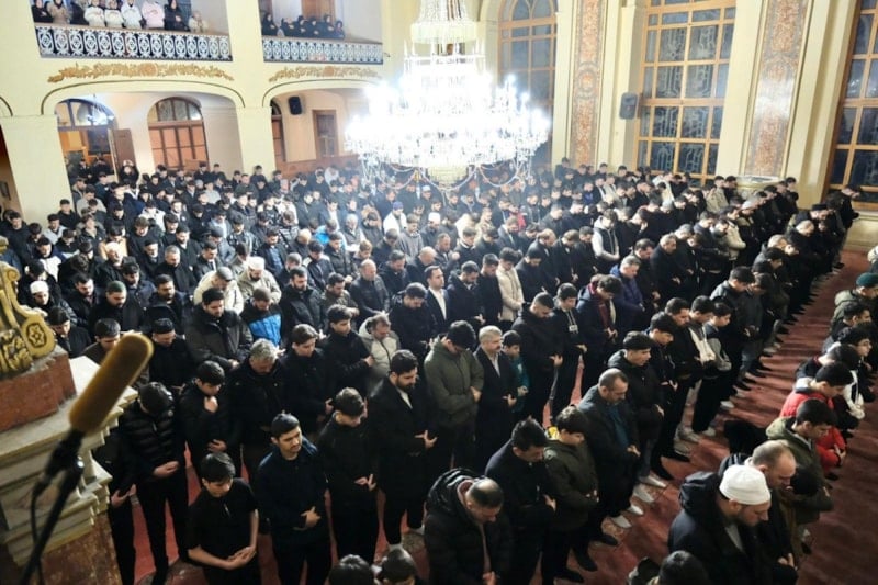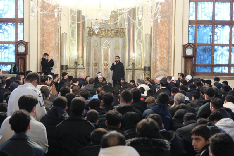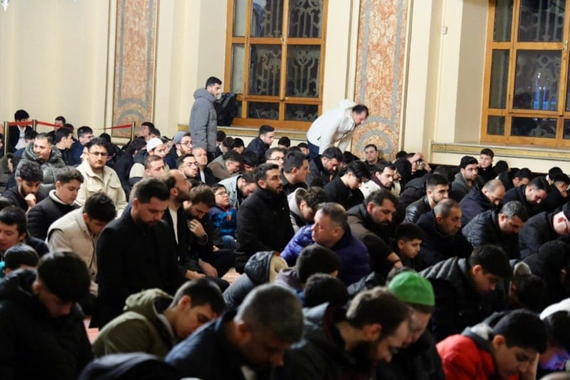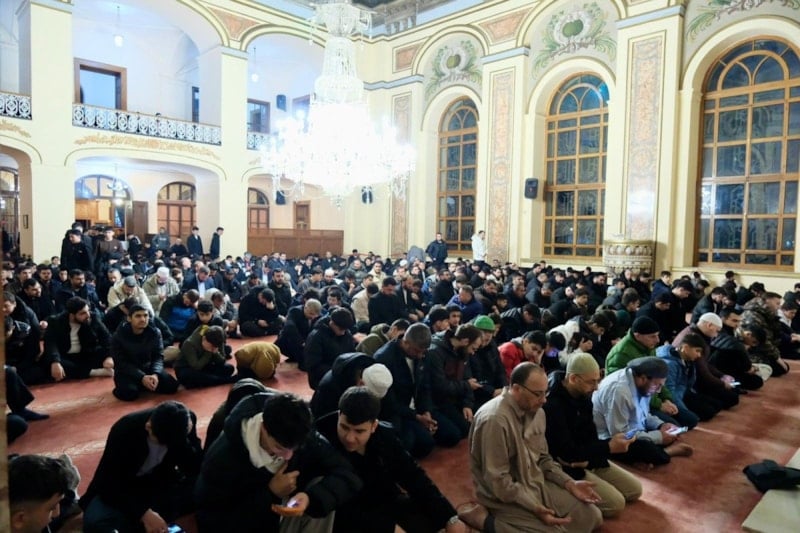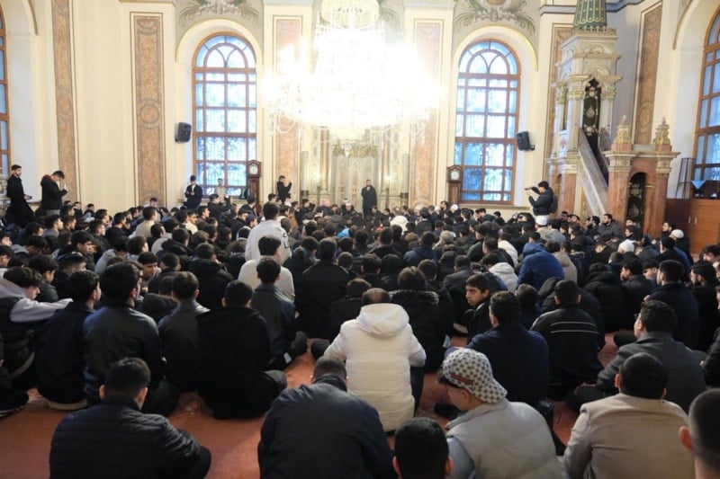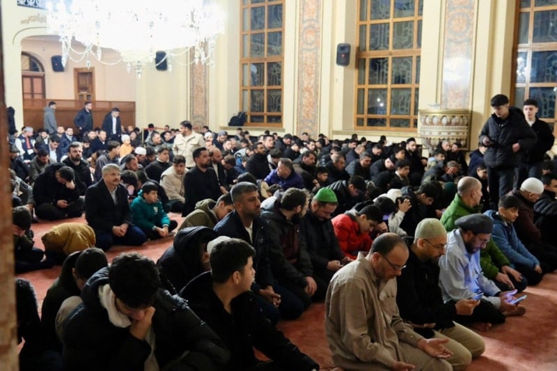 Sabah namazının ardından camiyi dolduran gençler hep birlikte salavatlar getirip dua etti.