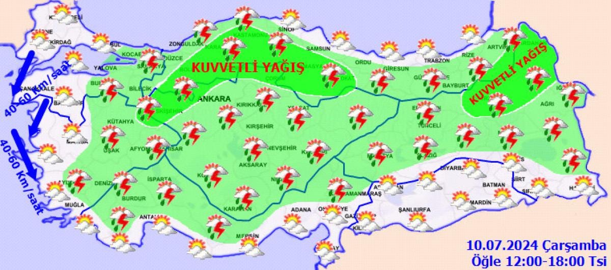 Parçalı yer yer çok bulutlu, öğleden sonra ve akşam saatlerinde bölge genelinin yerel sağanak ve gök gürültülü sağanak yağışlı geçeceği tahmin ediliyor. Yağışların; öğleden sonra ve akşam saatlerinde Eskişehir, Çankırı ve Yozgat çevreleri ile Ankara'nın kuzey ve batı ilçelerinde yerel kuvvetli olması bekleniyor.