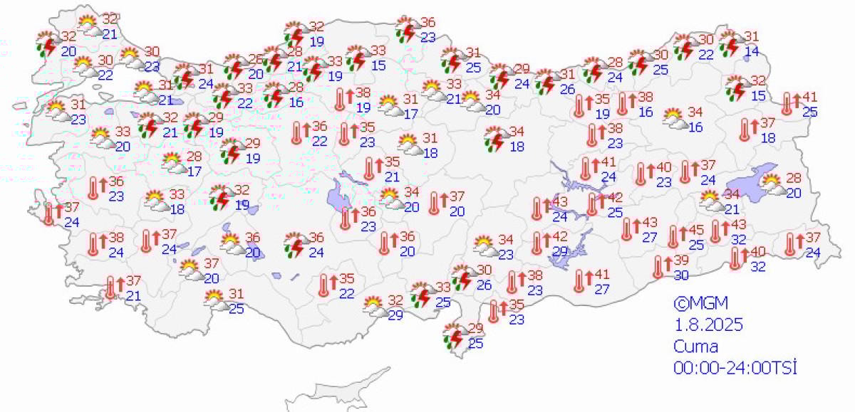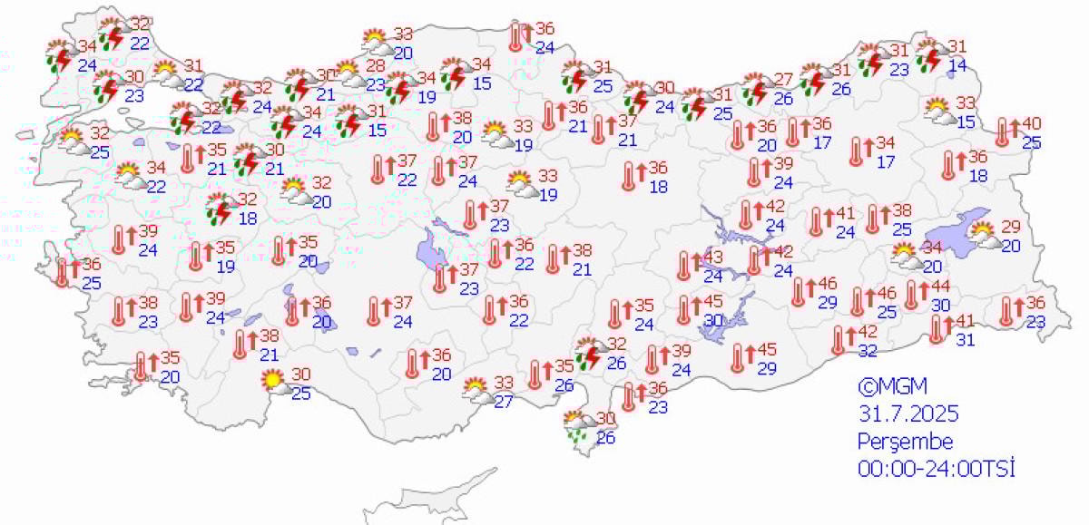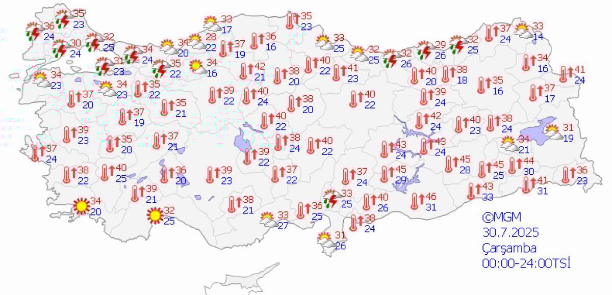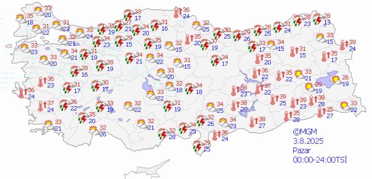 İstanbul 35, Ankara 40, Bursa 37 derece.