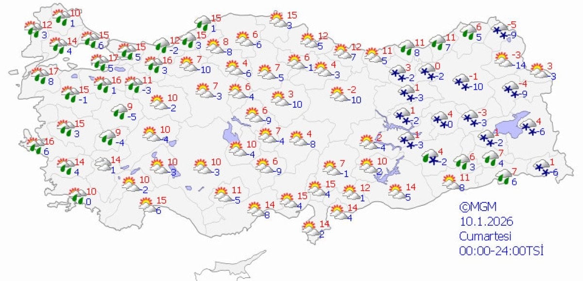 Bugün; İstanbul 15, Ankara 12, İzmir 17, Bursa 15, Antalya 19 derece civarlarında seyredecek.