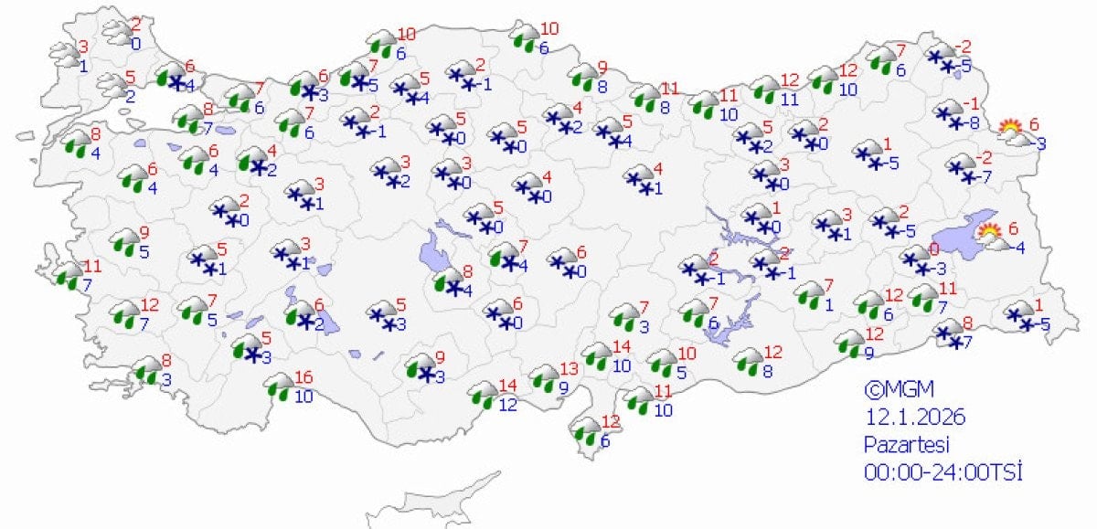 Pazar akşamı pazartesi ve salı günü, ülkenin büyük bölümünde kar yığışı olacak İstanbul'da da pazar günü sulu kar pazartesi günü kar yağışı ihtimali var.