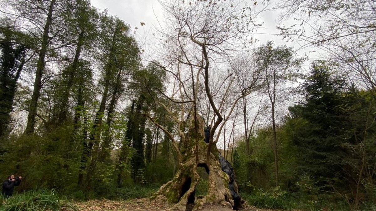 Görünümüyle oldukça dikkat çeken bu ağacın gövdesinin içi ise çürümeler nedeniyle boşalmış durumda.