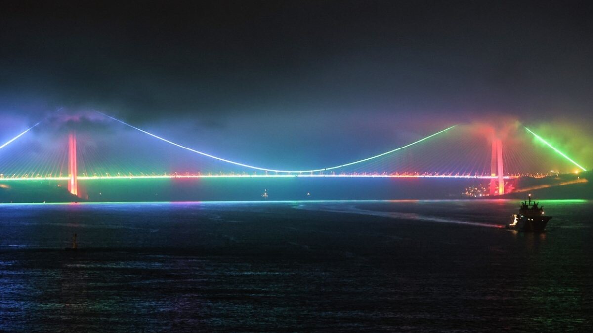 İstanbul’da Fatih Sultan Mehmet ve Yavuz Sultan Selim köprüleri, Azerbaycan'da cumhuriyetin ilanının 103. yıl dönümü için Azerbaycan renklerine büründü.