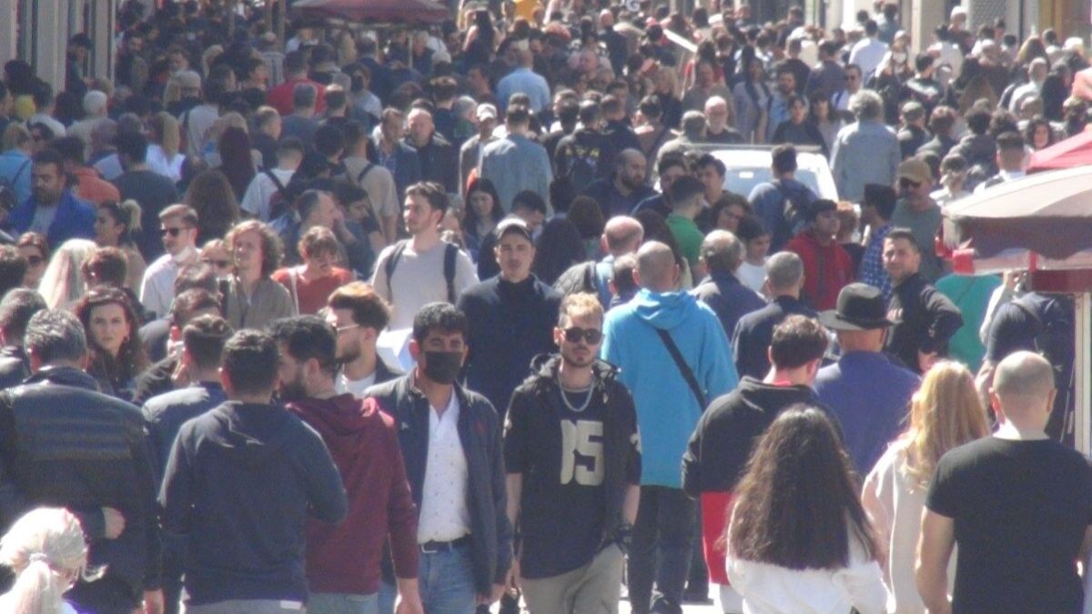 Taksim'de turistlerin yoğunluğu da dikkat çekti. Maske zorunluğunun kalkmasının ardından kalabalığın büyük çoğunluğunun maske takmadığı görüldü.