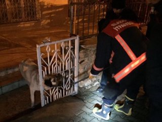 Elazığ'da kafası demir parmaklıklara sıkışan köpeği itfaiye ekipleri kurtardı.