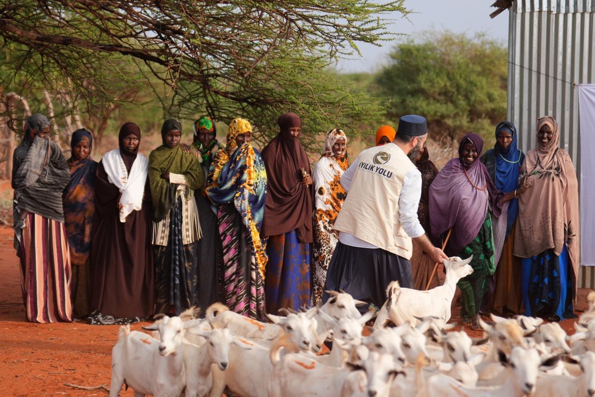 Guriel ve Dusamareb bölgesinde Gelir Temini Projesi uygulayan İyilik Yolu, ailelere süt keçisi ve dikiş nakış makinesi hediye etti.