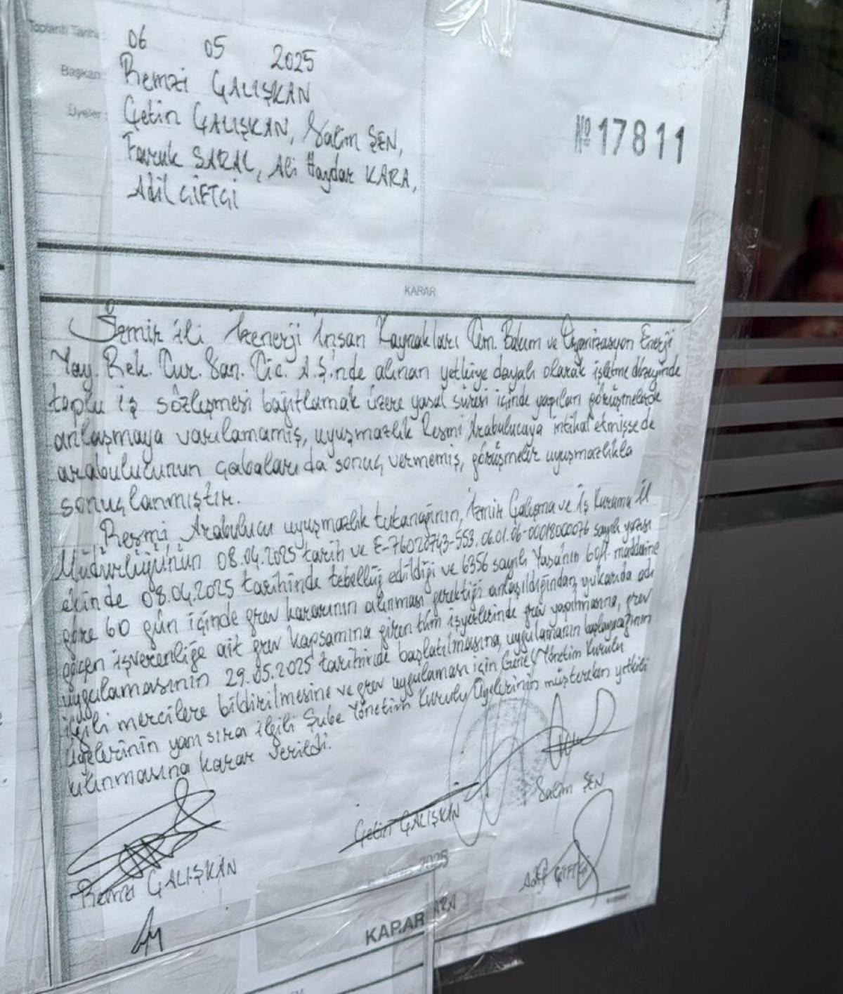 Toplu İş Sözleşmesi (TİS) görüşmelerinin tıkanması üzerine iyice zor durumda kalan işçiler, İzmir Büyükşehir Belediyesi Hizmet Binası’nda toplanarak Kültürpark içerisindeki belediye binasına grev ilan kararını astı.