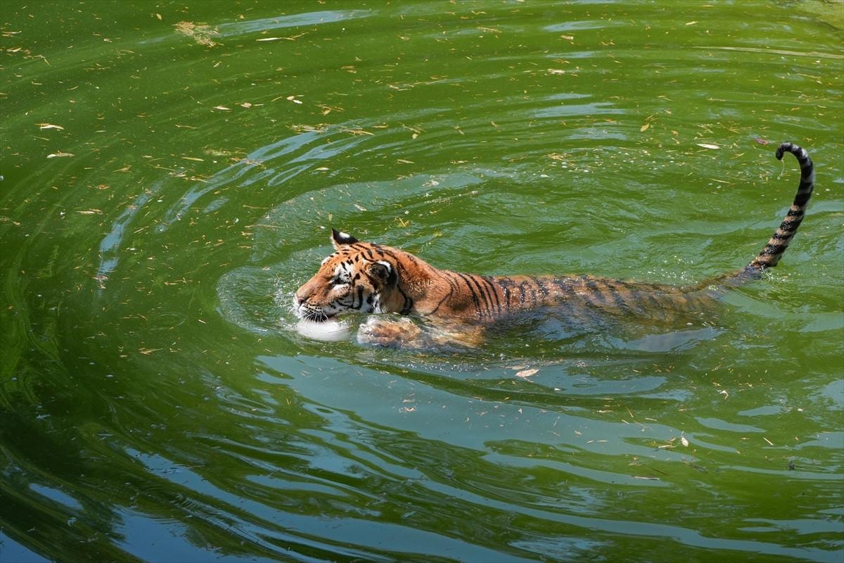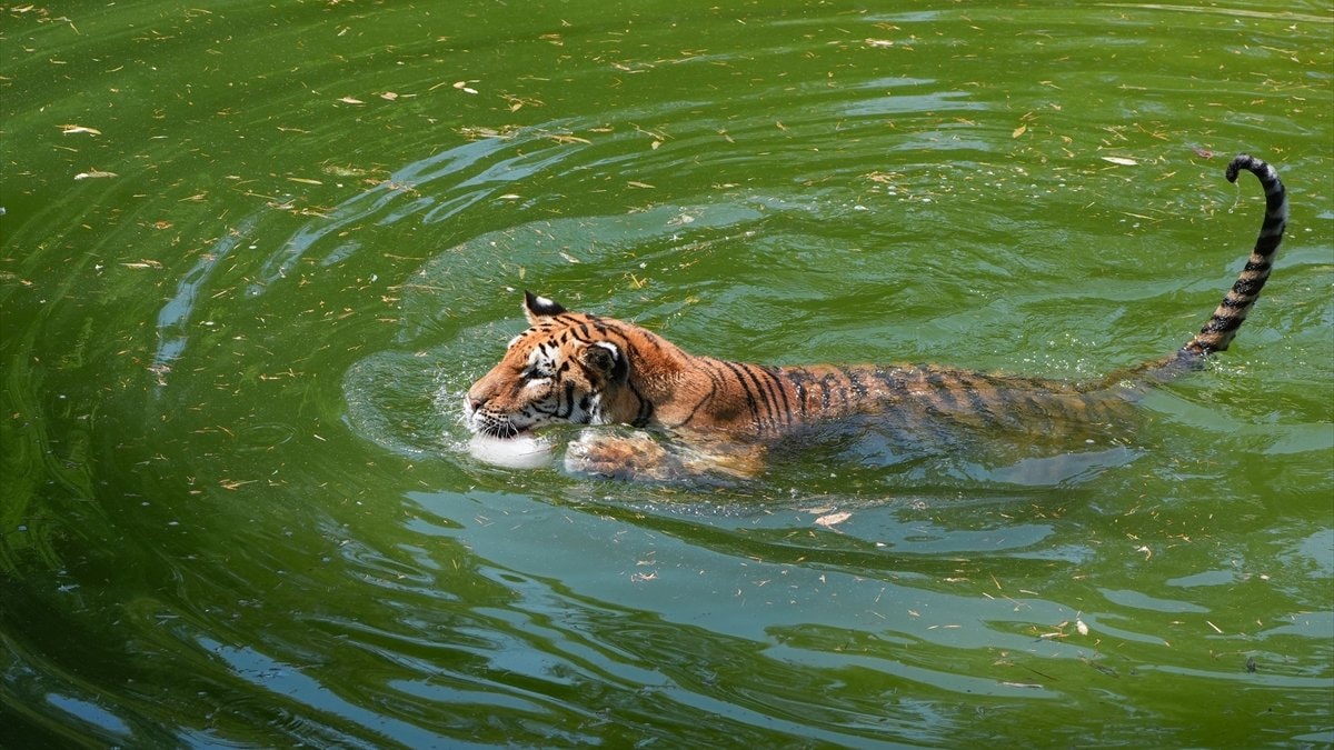 İzmir'in Çiğli ilçesinde 126 türde 1300'den fazla hayvana ev sahipliği yapan İzmir Doğal Yaşam Parkı'nda sıcaktan bunalan kaplan, ayı, aslan gibi hayvanlar barınaklarındaki gölgelikler, gölet ve havuzlarda serinliyor.